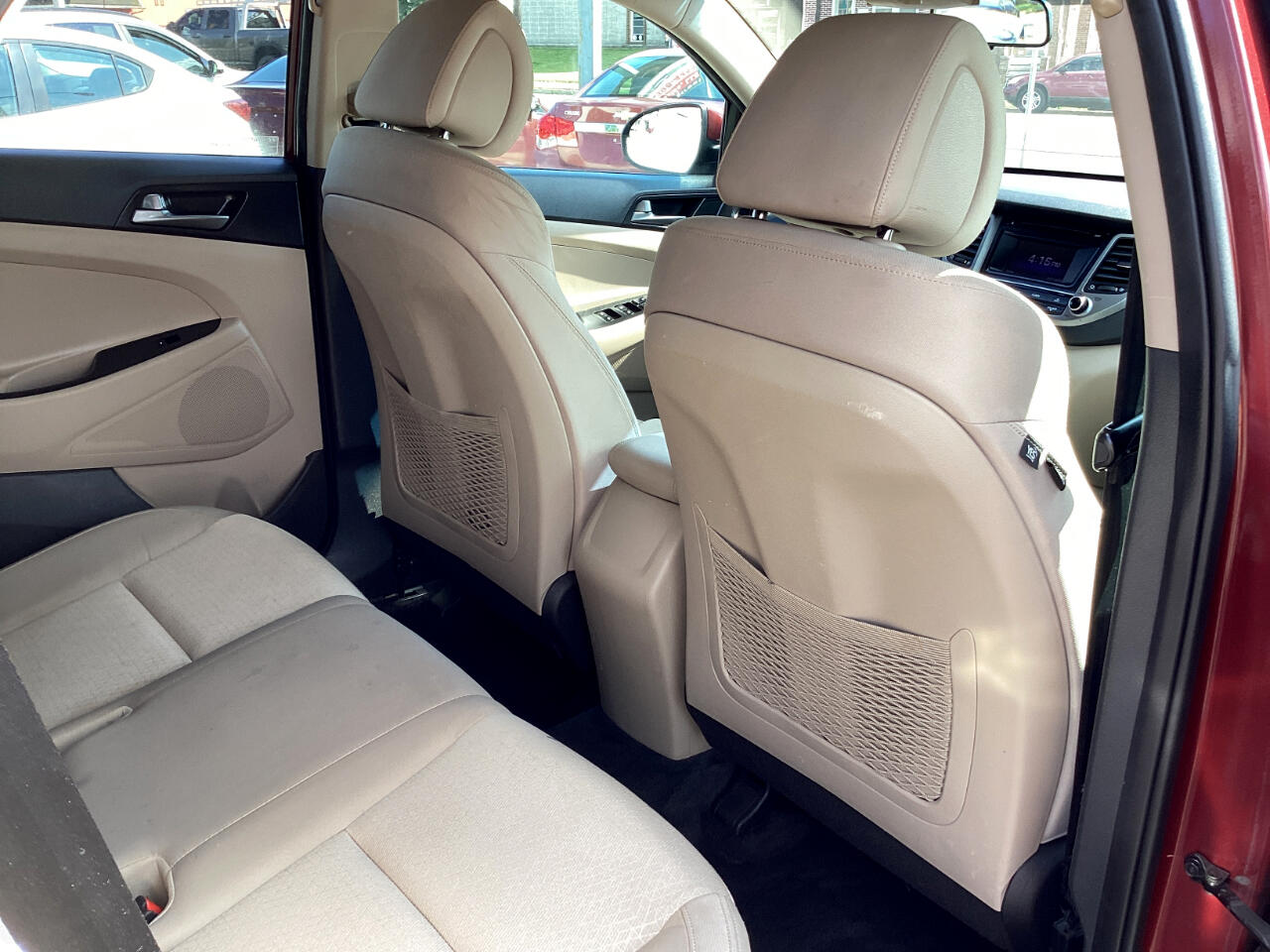 Get ready to revolutionize your daily commute in this stunning Burgundy 2016 Hyundai Tucson! This reliable beauty boasts a powerful 2.0L DOHC 16V I4 engine, paired with a smooth 6-speed automatic transmission for an exhilarating drive every time. With its sleek body design and 17" alloys, you'll turn heads wherever you go. Step inside the spacious cabin and sink into the comfortable front bucket seats with power adjustments - the perfect spot to enjoy the Autonet AM/FM/SiriusXM/CD/MP3 audio system with 6 speakers. Plus, you'll have peace of mind knowing there's a back-up camera to assist you in tight spots. This Hyundai Tucson has been meticulously maintained, with a Carfax report available for your review. Don't miss out on this opportunity to own a versatile SUV that's perfect for both city streets and off-road adventures. Strap in and get ready to experience the thrill of the open road in style!